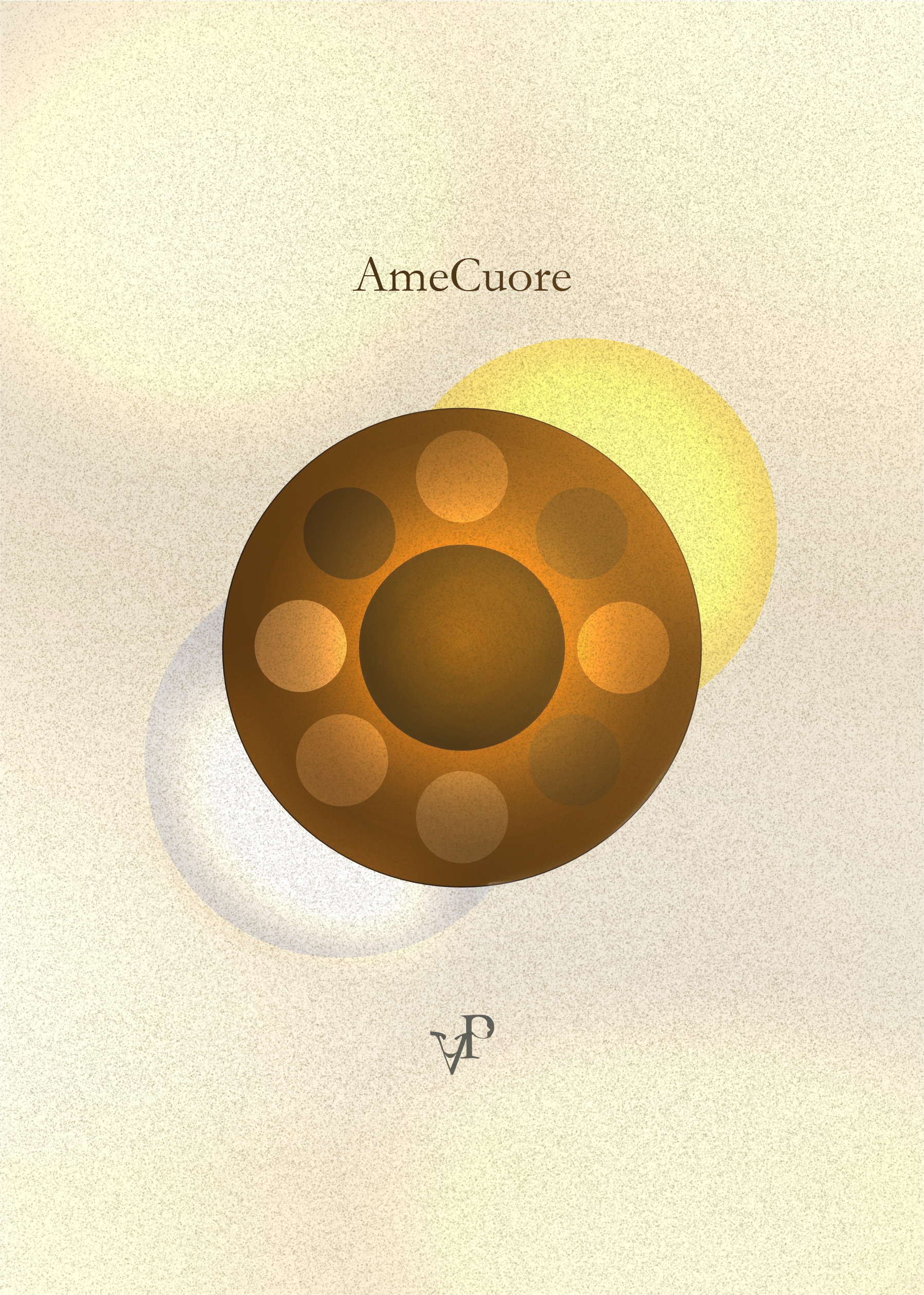 I kept the composition in which the brown circle, symbolising the human iris, remains in the centre, with two more circles appearing behind it, symbolising the moon and the sun. The arrangement is also not accidental. The sun is higher because it represents light and joy, while the moon, which is lower, is a symbol of shadows and secrets.